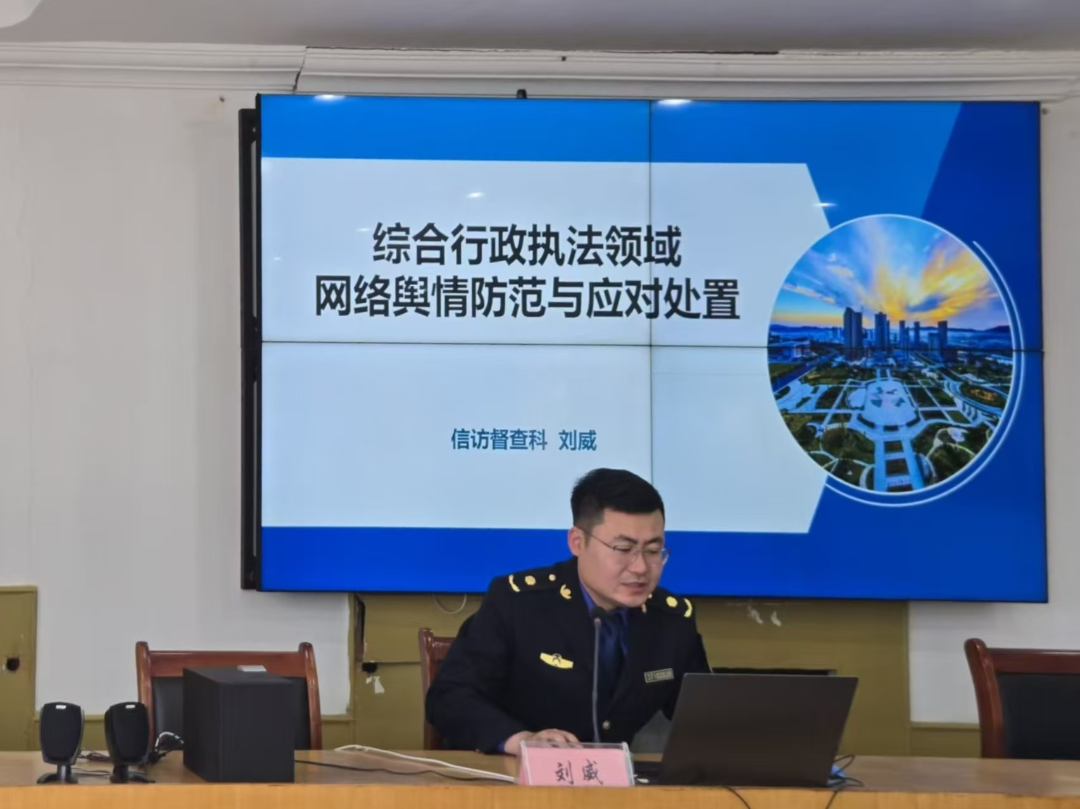 第二阶段课程由信访督查科负责人刘威围绕执法舆情应对处置开展专题教学。刘威系统讲解舆情处置流程、方法技巧与工作重点,明确不同阶段舆情应对关键举措,重点围绕执法现场舆情防控、规范回应话术、应急处置要点等内容进行实操指导,并与参训人员互动交流、现场答疑,有效提升了全体人员的舆情实战应对与风险处置能力。